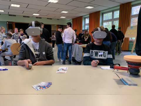 Im Rahmen des Projektes „Mit lokalen Partnern Richtung duale Berufsausbildung“ an der kath. Hauptschule Husen fand am 13.11.2019 die Kick off Veranstaltung, eine Mini- Messe mit lokalen Unternehmen, zum Thema Virtual Reality statt.